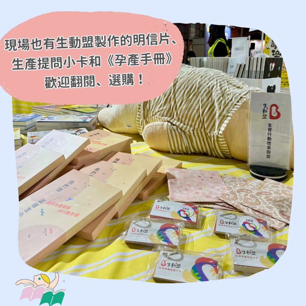 說了這麼多,書展最重要的書就在「公民書區」。甫獲獎的《我們想這樣生小孩!陪伴孕產旅程的行動手冊》和「生產提問小卡」、「待產姿勢明信片」都歡迎現場翻閱、帶他們回家呦!