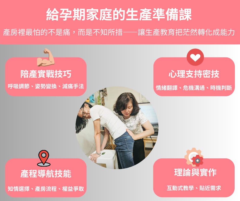 為什麼你需要實體生產教育/準備課? 產房裡瞬息萬變,產婦與陪產者不僅需要腦袋裡的知識,更需要身體記憶。當產婦痛到無法溝通